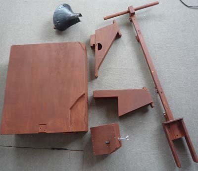 | 木の箱は支柱になる棒とベニア板で出来てます。 強度が必要な部分のみ12mm程度の合板を使いました。 ![]() ![]() ![]() |