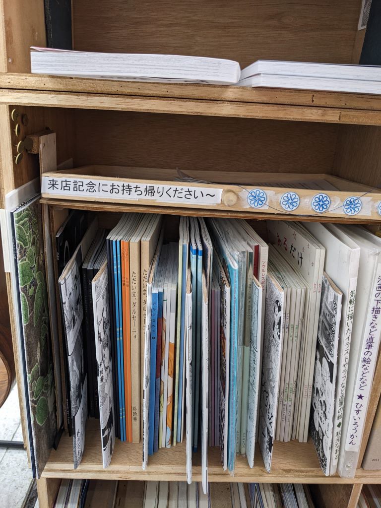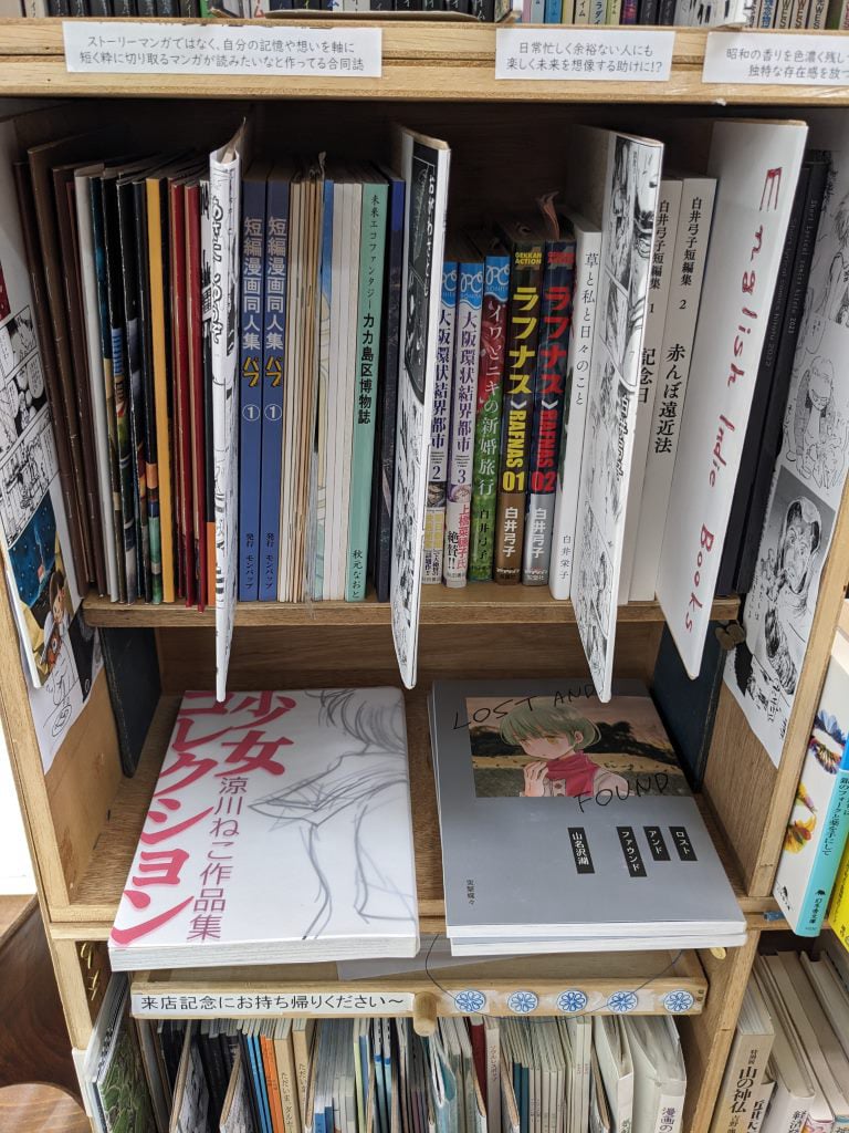 マンガ仲間に声をかけて、一緒にここでマンガ同人誌を置いてみて、どれだけ一般の方に読んでいただけるのだろうか?挑戦しています。2019年にみつばち古書部に、2020年から書肆七味開店と同時に移籍しました。2026年現在3箱です。「叙情派ひとつマンガ同人誌」という箱主名でやってます。